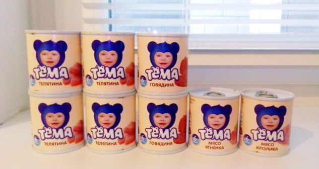 1. Мясные баночки в жестяной упаковке. Из расчета 1 банка мясного пюре в день (телятина, крольчатина, индейка, говядина). Именно жестяная банка, она весит на 100 (!) грамм легче, стеклянной.