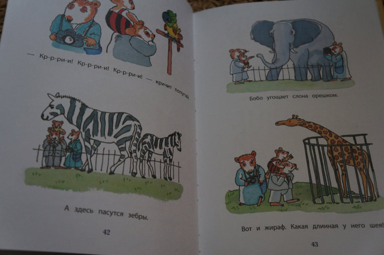 А знали бы вы, как подходит эта книга для развития речи!!! Дочь постоянно проговаривает все картинки и называет предметы и действия, т.к. все эти ситуации и предметы ей знакомы.