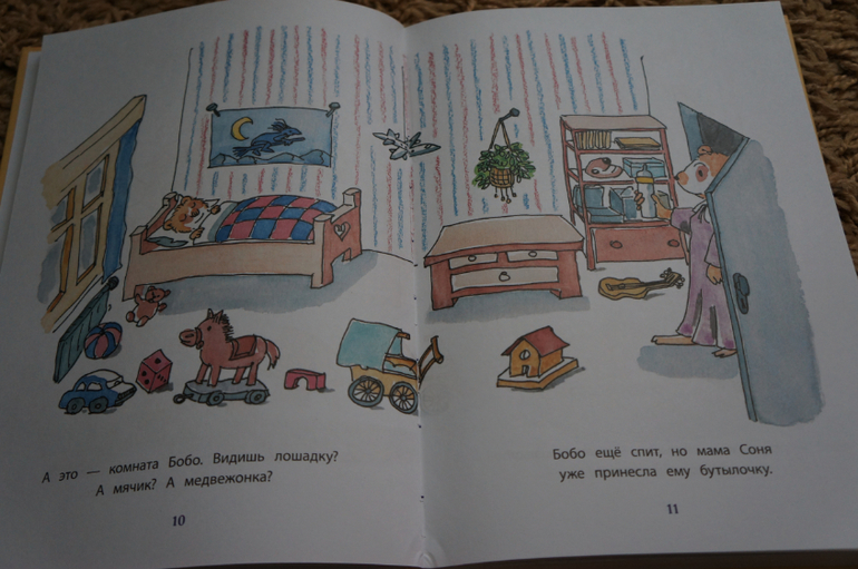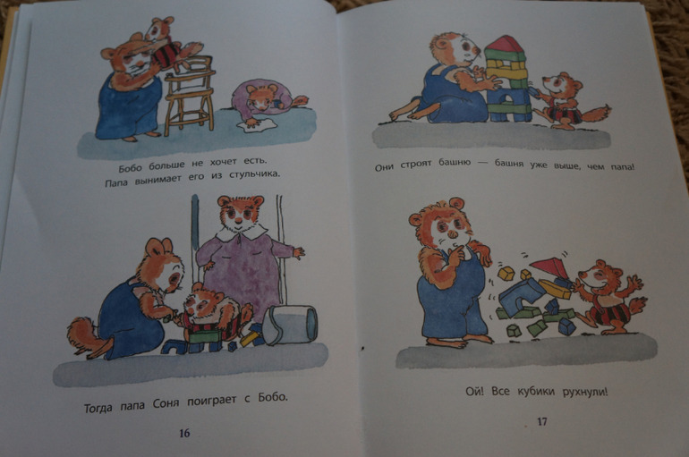 Книга о маленьком Бобо из семейства сонь. Каждый день Бобо проходит также, как и у обычного ребенка.