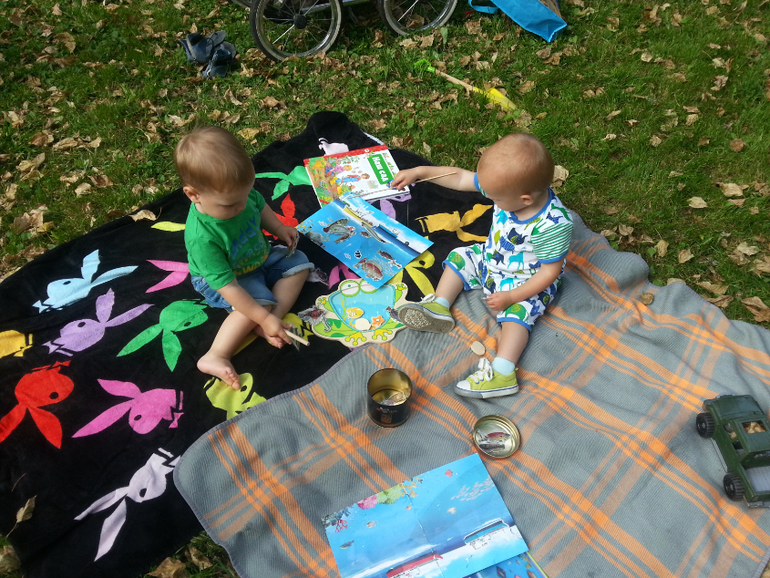 Первый раз опробовали игру в парке, уютно расположившись на коврике у Виноградного пруда.