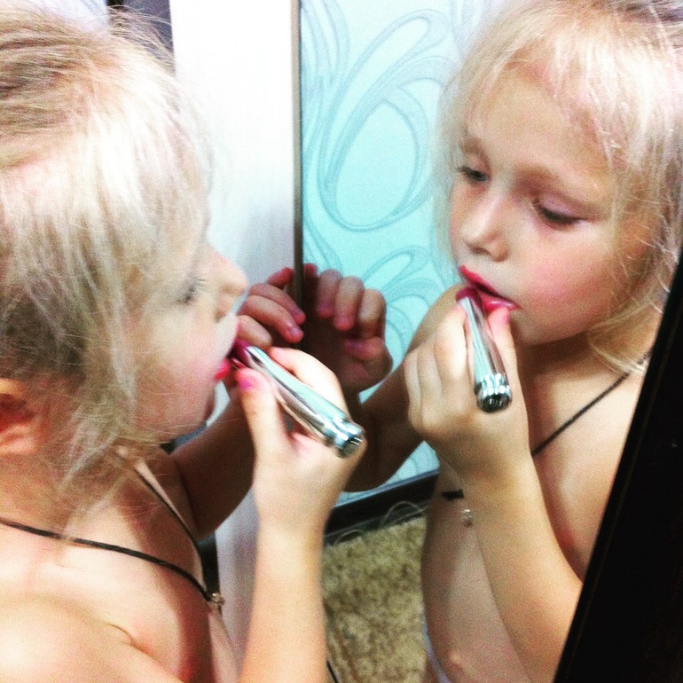 Какая блондиночка хорошенькая) ну прелесть) а помада какая, вкус определенно у малышки есть)