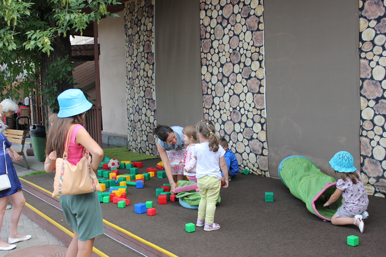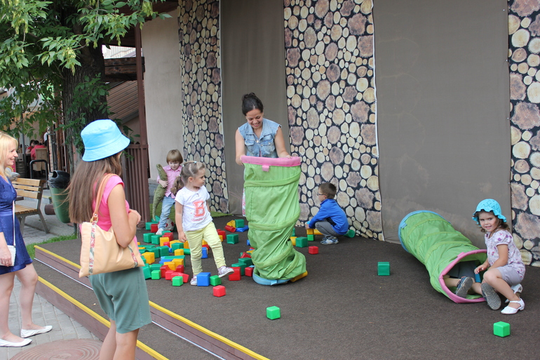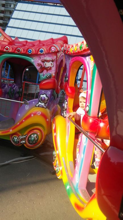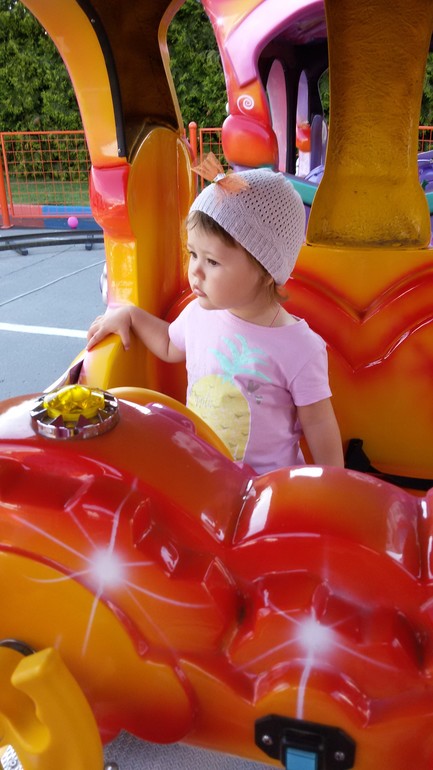 Катались с ней на детском паровозике. Красивый, яркий и еще с музыкой. Ей очень понравилось, уходили со слезами