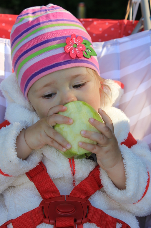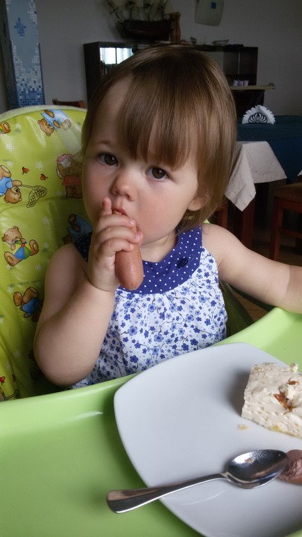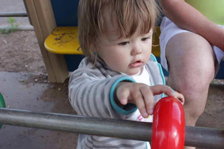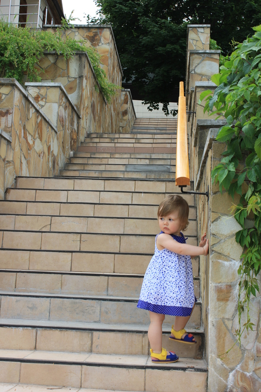 Меня радует, что она научилась и уже уверенно поднимается по лестнице. Особенно на детской площадке. Ура, можно уже не бегать туда-сюда и тесниться среди кучи малышей. Сама забирается на высокие горки, садится,а я ее ловлю внизу.