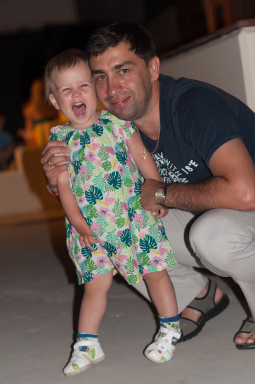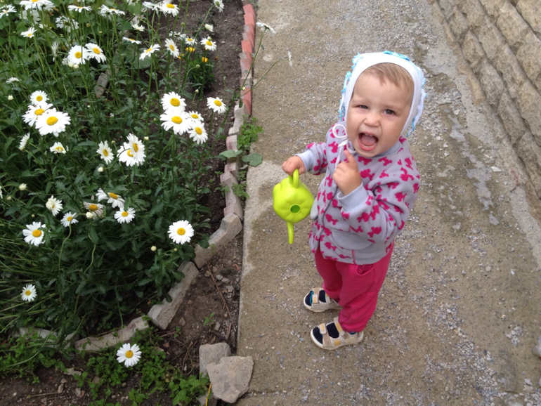 Болтаем предложениями типа: Ну чо, пойдем умываться? Чо-то Зебра не сажается... Ника! Сиди спокойно! Ну, прилично так болтаем. Поняла я на ней свои речевые чокающие ошибки - буду исправляться. Зависима и требовательна. Если мы с ней вдвоем - требует моего внимания и участия в 100% объеме - поставь песню, посади куклу, помоги, похлопай, дай водички... Делаю домашние дела жуткими урывками и отпрашиваниями - ну еще пять минут доч, ну вот возьми еще поиграй, подожди и т.д. Если не бросаюсь сразу - можем заунывненько поныть. Любит спецавтотехнику: грузовики, самосвалы, краны, тракторы, экскаваторы. Восторг они у нее они вызывают и долгое потом обсуждение. Девочка, что с нее взять. Еще в фаворе фонтаны, статуя Ангела, колесо обозрения. Качели-карусели наше все, причем с недетской амплитудой. Может качаться часами. Боится много чего: больших фигур животных, многих насекомых, жмется ко мне когда мимо идут люди. Период стесняки, как она сама себя называла, прошел, с большими людьми ладит, но осторожно, с детьми легче. Любой ритм - от шансона до клубняка вызывает незамедлительное танцевание с забавными движениями. Любит детские песни-активити Железновых и минидиско ритмы. Может по писят раз подряд их слушать и танцевать. Ходит в моих и папиных тапках и пробует каблуки. Пытается сама одеваться - смешно. Пытается выбрать себе наряды - еще смешнее. Но не вмешиваюсь, если только не штаны с начесом в июле. К малеванию и чтению немного остыла, да и некогда - стараемся весь день быть на улице. Иногда может самозабвенно играть в песочнице несколько часов, со мной рядом ессно. Пытаемся освоить велосипед и самокат. Любит помогать: закинуть белье в стиралку, попротирать что-то, попшикать цветы, покормить кошку, пособирать листья. Правда часто после помоганий мы грязные по уши, мокрые и цветы сломаны((( Стала предпочитать детскому стулу обычный. Иногда ест сама, иногда кормлю я. Пытаюсь построить с ней грамотные отношения, порой получается, порой ловлю у себя неприятный менторский тон и повышенный голос. Генетическая память часто срабатывает, особенно когда надо выходить через пять минут, а мы уже полчаса убегаем от одевания. Поет песни, рассказывает стихи, особенно болтология открывается перед сном. Пока увы не читает и не пишет((( по физике: стала сама залезать под моим контроле по лестнице на горку, по лестнице в дом сходим и заходим. Заходим, сходим с холма, в качестве упражнения. Ходим на развивашку по Зайцеву, больше для общения, ей нравится. Любит ходить "болтать" по телефону. Залезает на любые сидячие поверхности. Любит, чтобы хвалили, хлопали и восхищались. Ради одобрения сделает многое. Если в настроении. Сися наше все, но это грустный вопрос, вернусь к нему осенью. А пока: мама, кушать сисю на диване, кушать сисю на качелях, хитро: кушать сисю в машине (хотя знает, что нельзя). Говорит как ее фамилия, на какой улице живет, как зовут маму, папу, бабушку, многое очень запоминает, что я уже и не помню, мелочь какую-то. Рифмует слова. Фотографирует- старательно нажимает на кнопку и смотрит: что получилось. Выложу ее спонтанные фото, многие очень ничего. С горшком на Вы. У меня нет времени целый день за ней с ним бегать. Понимает для чего, но пока совершенно не чувствует момент, когда надо сказать заранее. Поэтому то в пампах, то пять трусов за бодрствование. Постфактум - с радостью и сразу