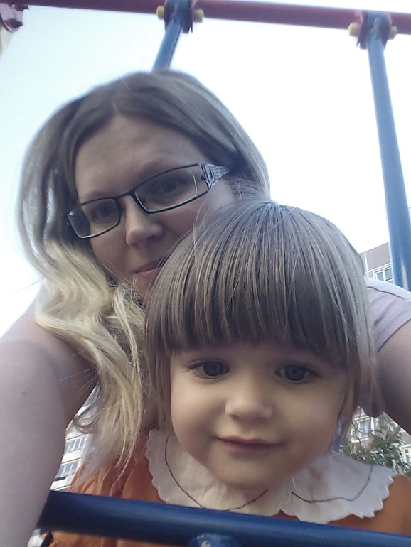 Кристи с удовольствием одела платье и даже раздрешила сделать хвостик! Прогресс!!