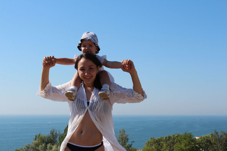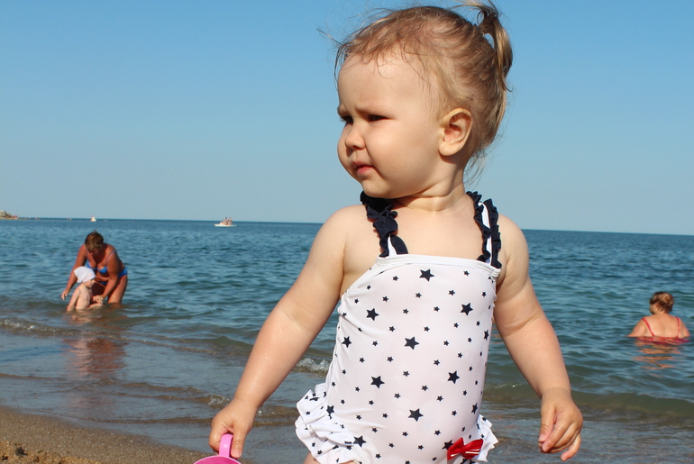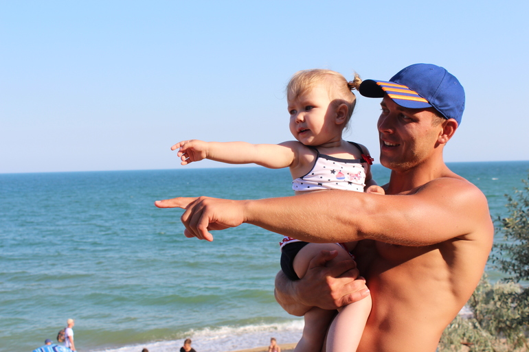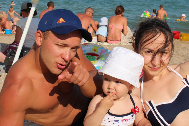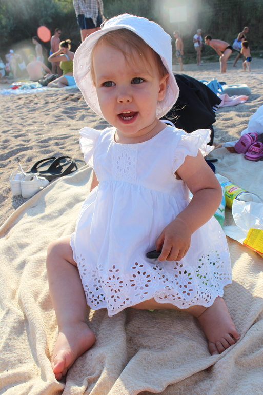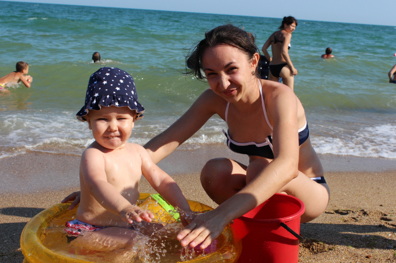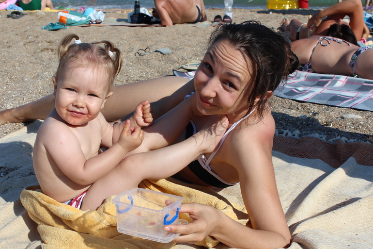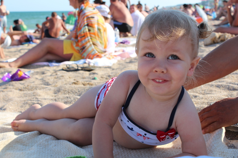 - вчера вернулись с моря. Я очень переживала о том, как она перенесет дорогу сидя на одном месте больше 5 часов...но слава Богу, все прошло хорошо. Туда мы выехали в 04:30 утра. Злата лежала в машине на месте, которое мы с бабушкой ей намостили, и смотрела по сторонам...уснула только к 05:30 на час максимум. Дальше всю дорогу с восторгом смотрела на фуры, большие автобусы и огромное количество машин. Само море произвело огромное впечатление! Его она называет "капа" :) Наша чистюля не ходила по песку и не купалась в открытом море. В сандалях приходила на пляж, потом до нашей подстилки я несла ее на руках, дальше мы раздевались и снова на руках шли в наш бассейн к берегу моря :) Обратный путь домой аналогичный. Даже водоросли плавающие в воде ей жутко не нравились :) В туалет ходили только на горшочек и каждый поход на пляж мы носили его с собой :) На море мы пробыли полных 5 дней и Злате этого было более чем достаточно. В последний день после утреннего моря она пришла домой, покупалась, переоделась, поела, села в машину и уже никак не хотела из нее выходить :) Уходя с пляжа, махала морю пока-пока и говорила "пка-пка, капа" :) Теперь когда видит фото заставки у меня на телефоне, говорит "мама и капа" :)