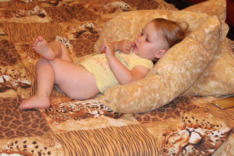 06:00 просыпается, будит меня...идем на горшочек по маленькому и без трусиков бежим в кровать к маме с папой досыпаеть еще часов до 07:00