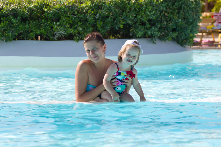 Погода радовала,но почему то на море первые дни были огромные волны и немного грязновато, поэтому мы брали машину и почти половину отпуска ездили по разным другим местам. Ну и нравилось Кире туссить у бассейна и в нём!