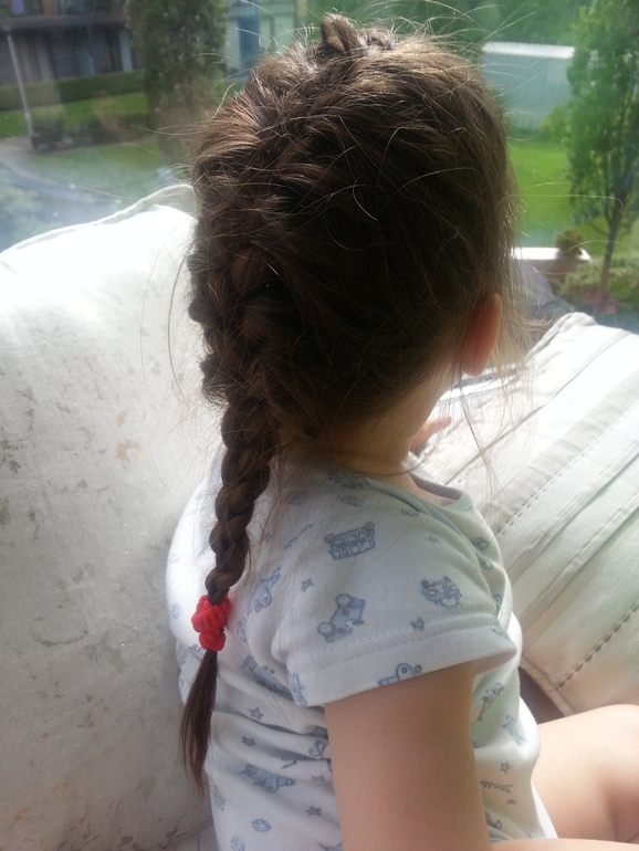 В садике перевели в группу постарше (2-3года). Сейчас лето, и 2 группы (2-3 и 3-4) вместе. Кира самая маленькая. Не знаю, что она там делает)) Кажется, ходить ей пока нравится. Утром начинает уже проситься (говорит, Дети дети). Из садика часто приходит с косичкой))