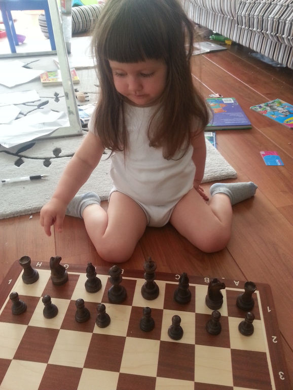 Начала проявлять интерес к шахматам. Уже выучила коня и пешку. Остальные фигуры (фигурки:)) пока не нравятся.