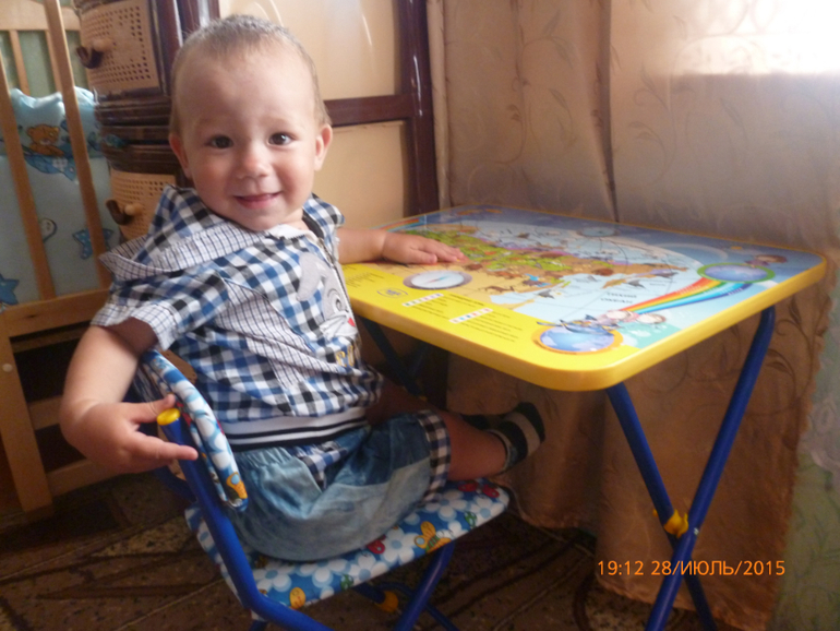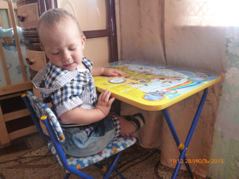 Растем и развиваемсяпришла пора учить ребенка сидеть и питаться за своим столом..мы купили простой набор ника))но вроде ни чего ,Амалю нравится.Стул немного высоковат,но он уже научился залезать на него и слезать!Первый раз когда увидел,мы его посадили так он с полчаса сидел и все там разглядывал.Сейчас как только я начинаю накрывать на стол,он сразу бежит к своему столу,сразу начала его кушать самому,первые дни большая часть была мимо,теперь уже больше попадаем в ротик и нам уже не нравится когда мама пытается поддержать ложку.выкидывает и орать начинает,овен блин)))))