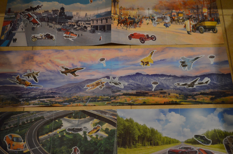 Они состоят из обложки с голографическим изображением,листа с наклейками и фона, который склеивается в длинную полосу из четырех плотных листов.