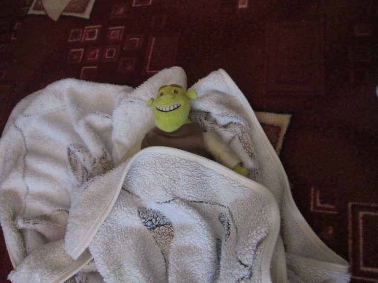 вот наши игры: положить спать Шрека, потом на горшок, потом покормить. после еды тоже на горшок. Шрек доволен.