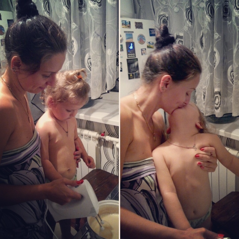 Вообще, она обожает, когда я готовлю и рассказываю ей. Так внимательно слушает и помогает, особенно нравится с тестом возиться. Вот такие у нас дела