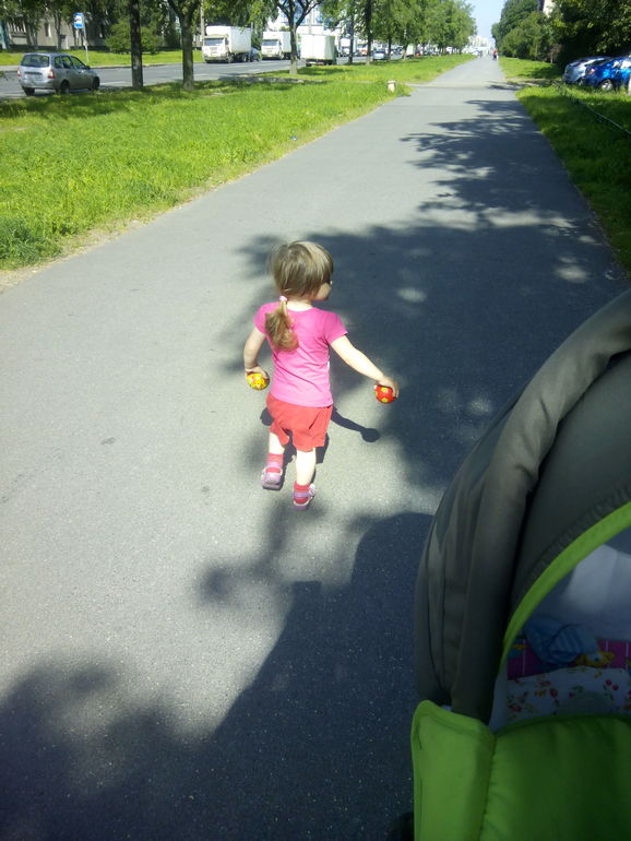 Какие же у нее волосы замечательные! Где в коляске сидит просто ангелочек)))