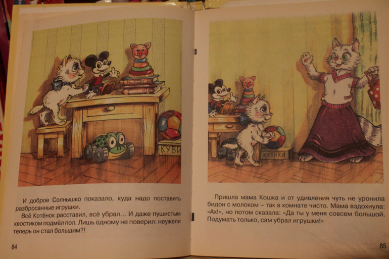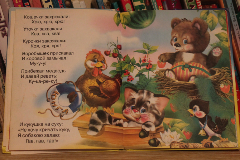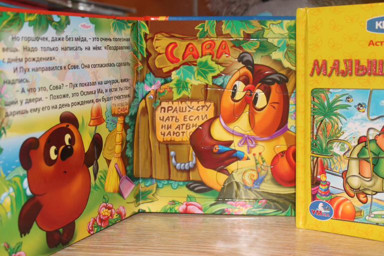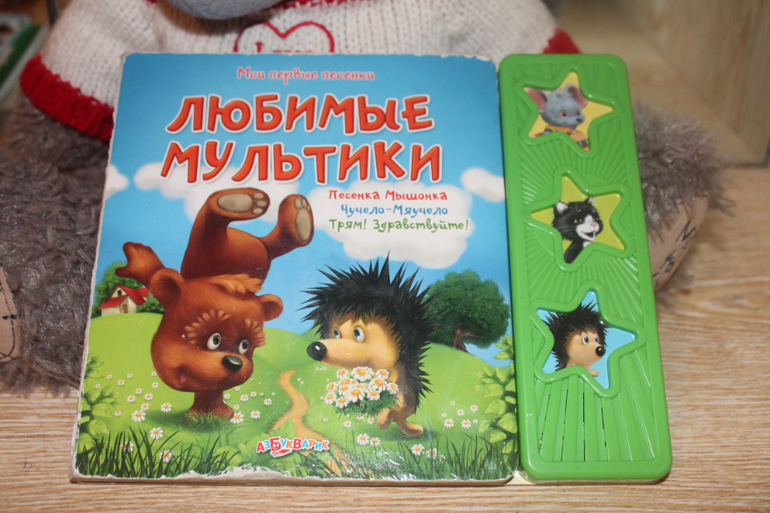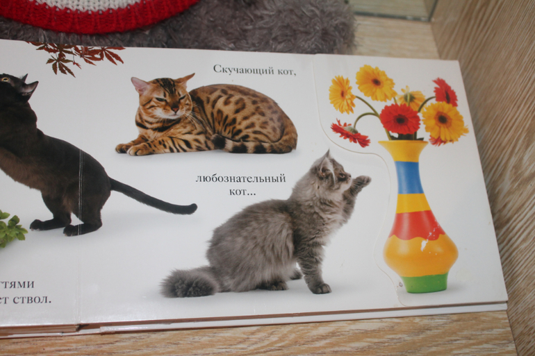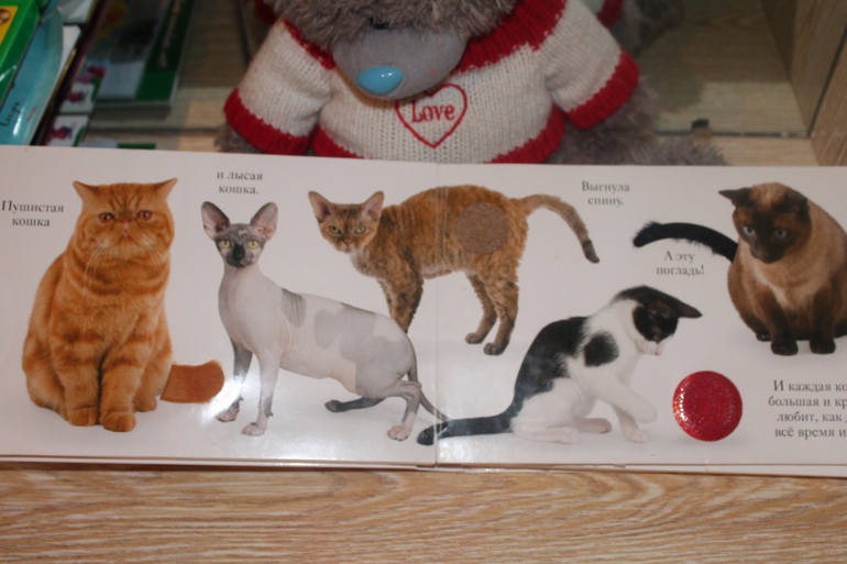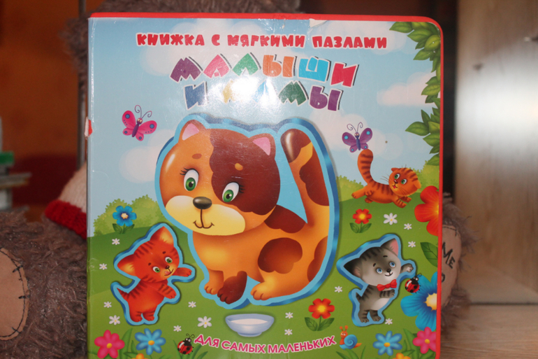 «Мяу». Книга для самых маленьких. В ней и пушистые вставки, и пищалки, и движущиеся элементы. Мой сын не выпускал ее из рук около месяца. Подойдет деткам с 9 мес.