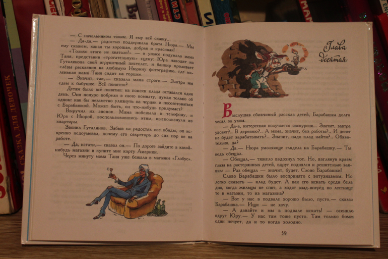 «Золотой ключик или приключения буратино». Так же мне было важно найти книгу с хорошими иллюстрациями, поэтому тоже коллекционное издание. Страницы мелованные, рисунки потрясающие! Правда есть одно НО! Мы перечитали ее с дочкой раз 500, поэтому лично мне уже надоела)))