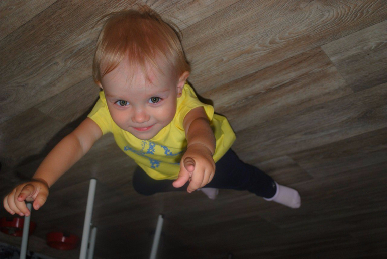 ♥ Любит нажимать все кнопки мира, особенно на стиральной машинке, и голову внутрь засунуть и кричать, кричать весело в подъезде, где эхо, голосистый у нас ребенок.
