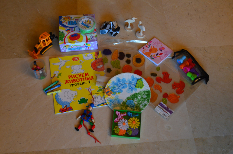 Удачный для детей нашего возраста и использования в дороге - набор Шарик от LORI. Главное его отличие от второго - он не застывает на воздухе и чист в использовании.
