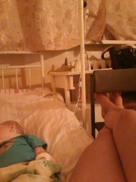 Мы поднялись на этаж, обессиленный малыш уже спал на плече, меня выгнали из процедурки и поставили ему катетер на тыльную сторону ладошки и укол болючим антибиотиком. Так мое сердце еще никогда кровью не обливалось. (((