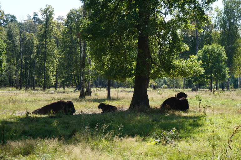 Приокско-террасный заповедник. Посмотрели зубров, бизонов (найдите 5 отличий называется))), пятнистых оленей и... коров! Остальное зверье там в музее в виде чучел.