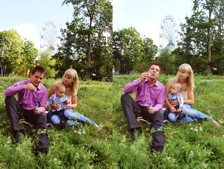 Здорово как! Вы красивые и счастливые! Такой и должна быть семья. А почему она вас фотки не обработала?