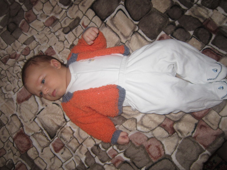 А еще вот кофточка , которую вязала при беременности - оказалась мала.