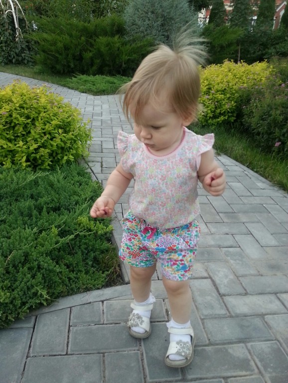 Очень нравится гулять на улице, когда говорю пошли гулять, показывает на дверь и говорит "пр-пр". На улице носится, только волю дай. Как же хорошо всё-таки летом гулять, что зимой делать, не представляю!