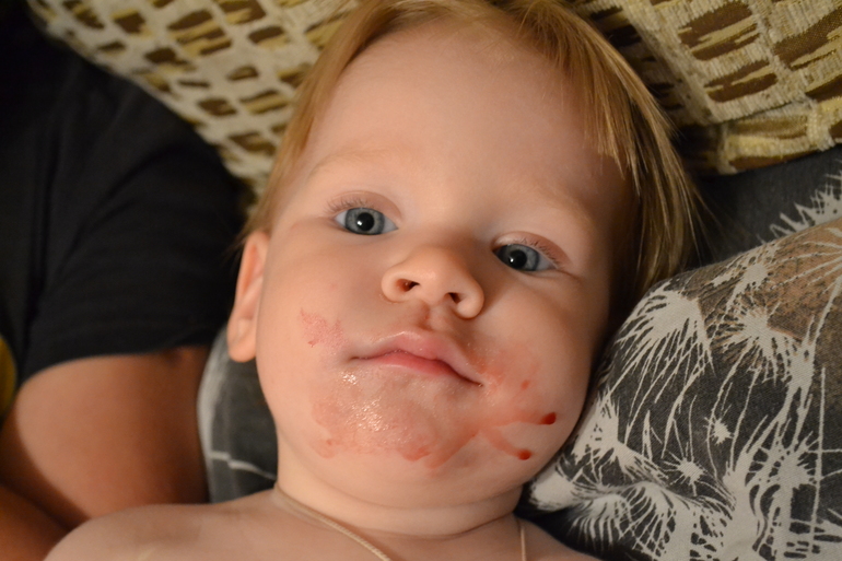 Вес 10кг, рост около 77см. Зубов пока 8, по-прежнему лезут моляры и снизу и сверху, дёсны набухшие.