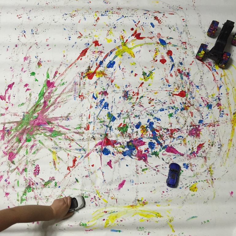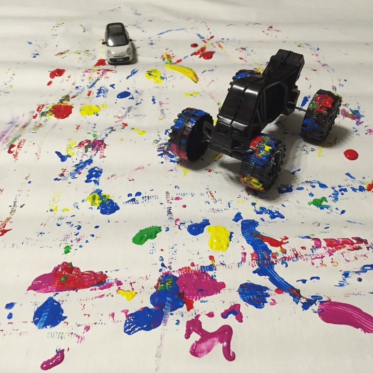 О, да, садиковская реальность очень быстро приедается детворе, у которых дома всегда весело и интересно! Но зато какой стимул каждый день во что-нибудь новенькое играть :-) Здорово погоняли по краске!