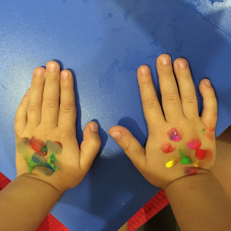 И долго мы еще не могли оторваться от красок и немного раскрасили друг друга.