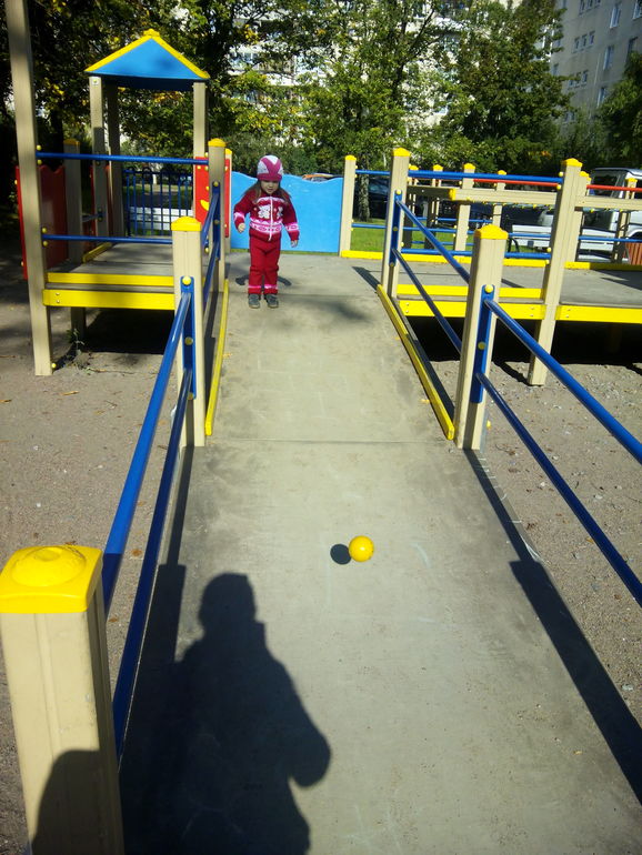 Сначала покатались на нашей площадке у дома) мы опять одни гуляли) потом поехали - на любимую Кристюшину площадку) там позависали около часа, и..