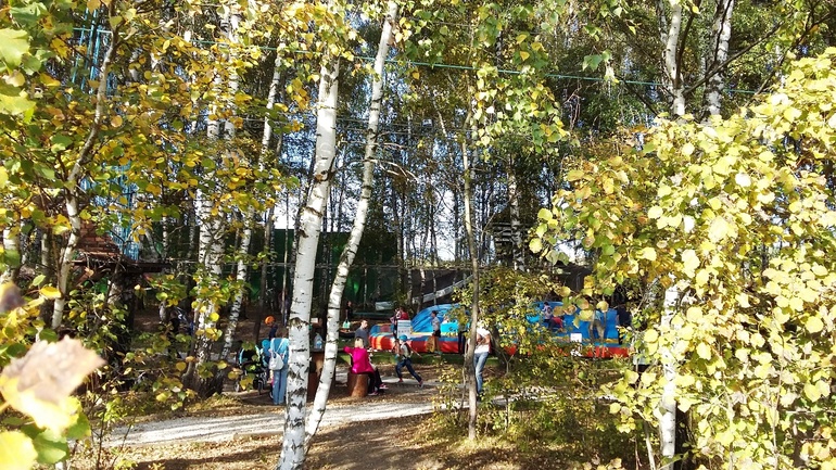 Детей загнали туда и через 5 часов с трудом cнимали их с деревьев, уходить не хотели.. Я за 5 часов офигела совсем, перед глазами от сеток мелкая рябь, а им хоть бы что: скачут, прыгают, ползают