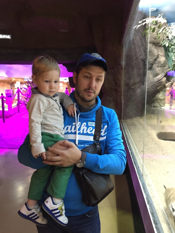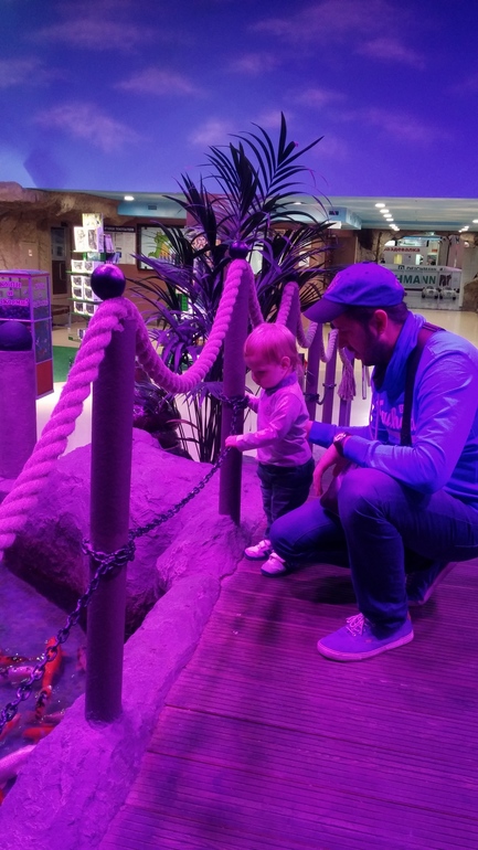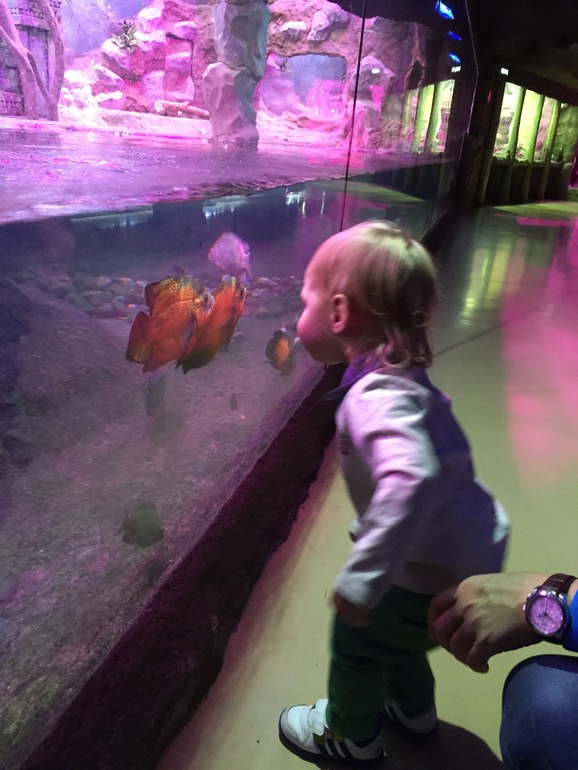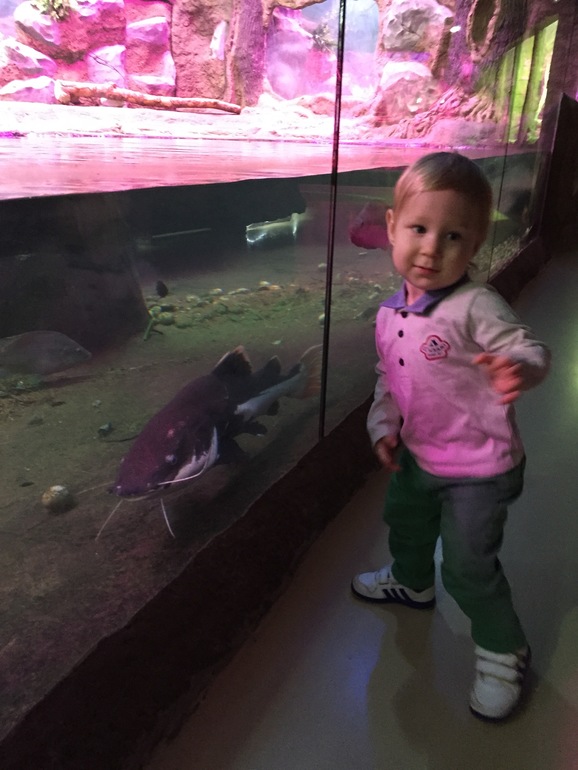 Рыбки явно заинтересовали Даню,поэтому он решил слезть с папиных рук и посмотреть на них поближе