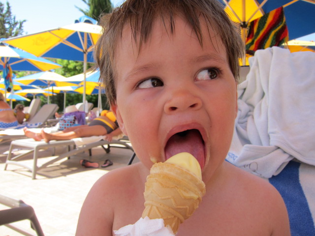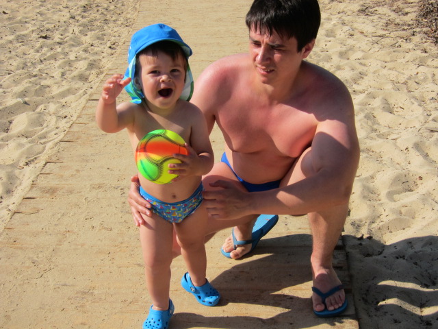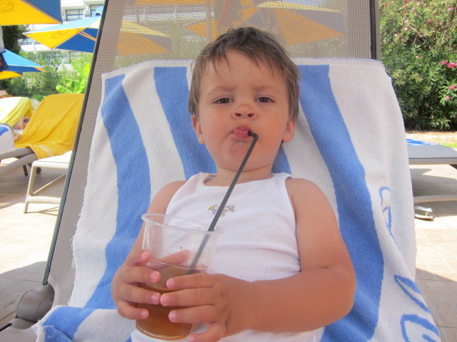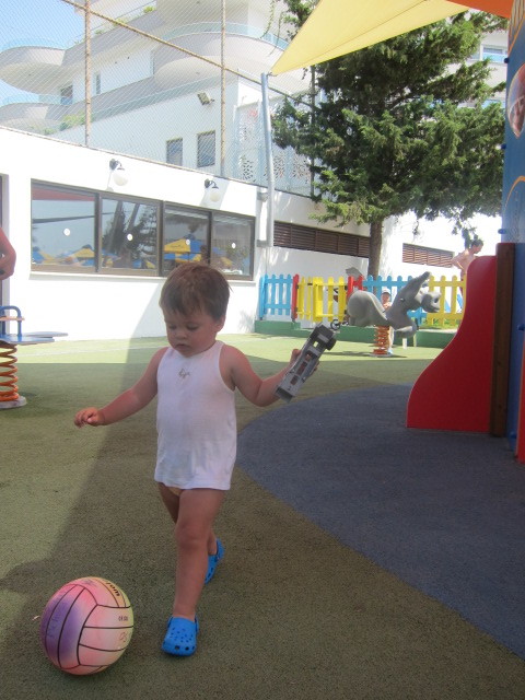 12.00 Возвращались к лежакам. Папа наш брал себе в баре коктейли, мы с Родькой соки и мороженое. Сок пил тот же, что и я, только без льда естественно. Так мы релаксировали приблизительно до 12.20, а потом шли на детскую площадку, где гоняли в мяч, катали машинки и.т.д.