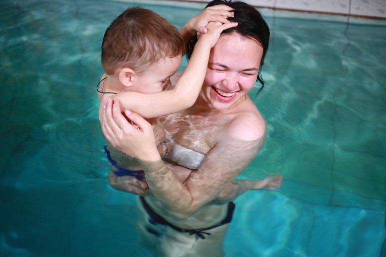Вылез из бассейна под предлогом шоколадки, которую дадим дома(благо он об этом забыл)