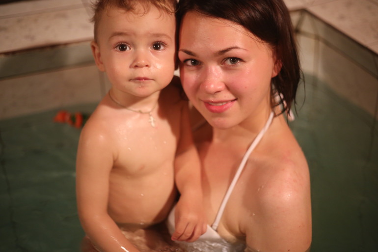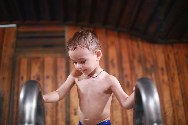 Греться в парилке он тоже отказался. Зашел с папой и через 5 секунд вышел и сказал горячО! Боялся, как же там папа так долго сидит