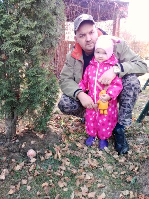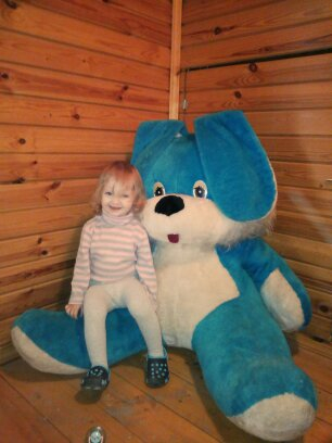 А это на даче в прошлые выходные, с папой и с зайцем: