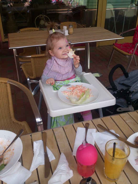 В целом ребенок нас радует, добрая девочка, и пожалеет и поцелует. Начала защищать свои интересы на прогулках. В первый момент удивляется, когда кто-то толкнет или ударит лопаткой, но вторую попытку уже не спускает с рук. Я конечно, стараюсь пресечь, но радует, что не безропотная овечка. В сад бежит с первого дня с удовольствием, даже не всегда удается ее удержать, чтобы чмокнуть. Сразу слышу ее смех))