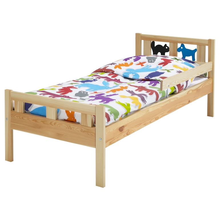 У нас самая простая из Икеи, стоила около 5 тысяч в августе, матрас там же взяли пружинный, хвалят - не хвалят, нормальный матрас, я сильно ими не заморачиваюсь, может, зря... Деть очень любит, особенно этих собачку с кошечкой в изголовье, я сама на ней помещаюсь и периодически с дитем спим вместе, если ему захочется, но я маленькая, сама 160 см и 45 кг веса, сын 100 с копейкой и кг 17, вместе нам вполне комфортно ))