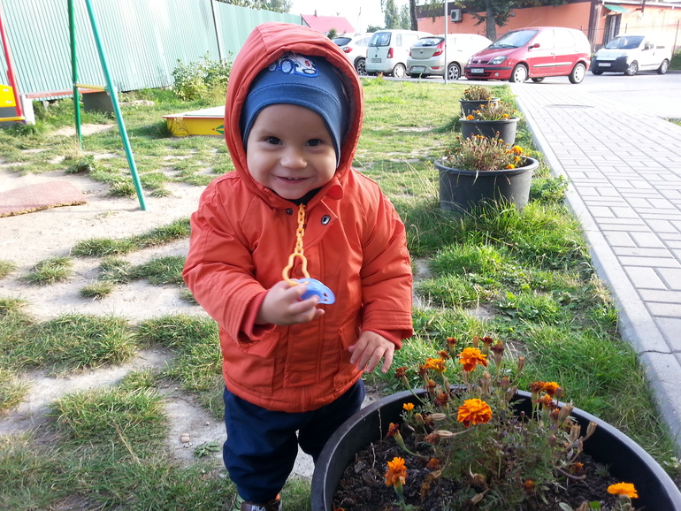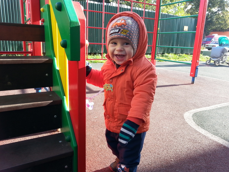 В плане физического развития у нас все хорошо!!! Ходим и даже бегаем по квартире! На улице тоже очень любит ходить, когда просыпается в коляске, сразу начинает хныкать, чтобы я его от туда достала) Нравится качаться на качельке, сейчас все реже, так как холодно на улице и ветер, боюсь чтобы не простыл. Любит сидеть на корточках, так это смешно выглядит, как говорится "как пацанчик на райончике"