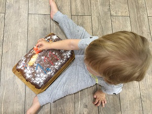 Начали готовиться к предстоящему дню рожденья. Тренируемся в задувании свечи