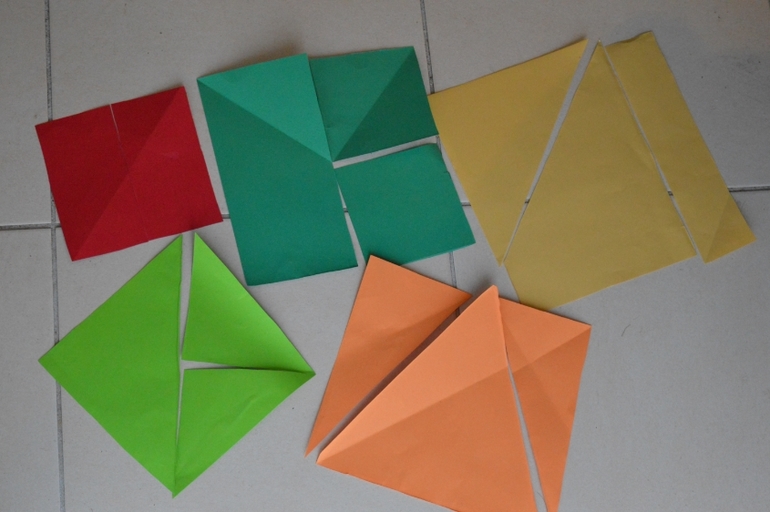 Растем и развиваемсяПока дети спят, нарезала я квадратов Никитина. Я тупая - тот, что разрезался на треугольнички (салатовый), не сразу сама назад сложила, сложный такой, хаха)))))) Сразу вижу свою ошибку: я использовала початую бумагу, обрезки, которые от прошлых игр остались (мы аппликацию делали), поэтому все мои квадраты разных размеров, а я осознала запоздало, что надо бы сделать все одного размера + квадрат эталон, на котором собирать, чтоб задать квадратную форму. Ваши детки справляются? В каком возрасте? Ант еще спит, еще не попробовали.