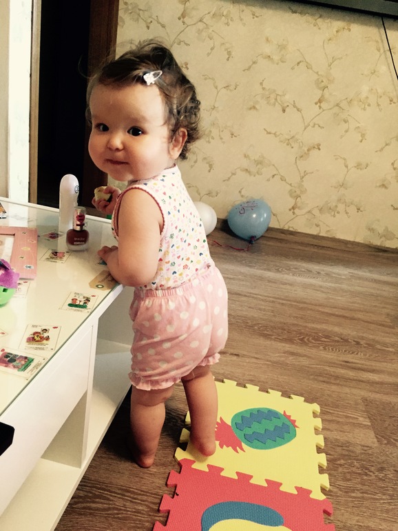 Мие через 5 дней уже будет год и пять! Отсчеты времени уже не так важны, как раньше и показатели роста и веса не так регулярны. Знаю, что весит Мия 10кг чистого счастья;) бегает, прыгает, кружится, танцует, поёт, мастерски строит глазки, боится шума и темноты, просится на горшок, рисует везде где можно, калякает на своём, если захочет, то скажет все доступным языком, но это редкость. Очень капризная, избалованная растёт. Ну, мне так кажется, остальные так не считают почему-то;) Говорят, что без меня она идеальный ребёнок! Не знаю-не видела;)Папка наш все время в командировках, мы с ней вдвоём тусуем. Скучно ей, без компании, раньше хоть на улице веселилась, а сейчас даже ей выползать туда не хочется. У нас такой дубак и снег и ветер, что мы все в зимней одежде и то холодно;( В связи с этим думаю записать в какую-нибудь развивашку, хоть с детишками поиграет. Ест всё, абсолютно. Не даю только грибы, остальное она ест из моей тарелки, так вкуснее кажется;) Но все это надо обязательно шлифануть маминым молоком!!! Я перестала получать от этого кайф, когда она стала больно щипать и кусаться, а сон эта целая эпопея! Да и не даёт ей просто покоя моя грудь, все время норовит руками туда. Замучилась, хочу прикрыть эту лавочку, но пока кишка тонка, т.к. всю ночь она только с ней в обнимку. Мне уже снится, как я буду спать на всей спине, а не в одном положении, как я смогу лечь на живот и пускать слюни в подушку... Мечты раньше были другими;)))))Раньше, когда слышала о кормлении детей до двух лет, ужасалась как так можно, теперь думаю как бэ и до трёх не дотянуть😬 Уверена, что всему-своё время и мы справимся!! Ещё научилась истерить, причём при мне плачет только от обиды и крайне редко, но если есть ещё кроме меня зрители,то всё...и выход только дать, что просит. Похоже, пора умнеть и читать умные книжки как этого избегать! Но часто на площадке встречаю таких гиперактивных деток, что моя мне кажется-ангелом;)
