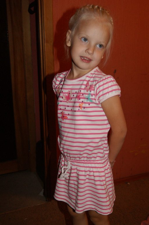 Я не подписывала, купила ленту с машинками и пристрочила к краю одежды (с изнанки ) По поводу волос не подскажу, до 7 лет носили каре