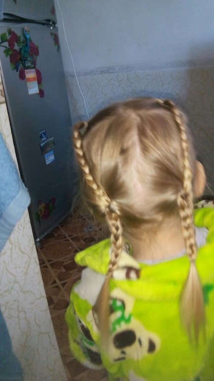 ага,и мне так заплетали)) Но тут не так,Поля и не даст так плести.Тоже луковички берегу.Девочка же,без волос потом ни как.