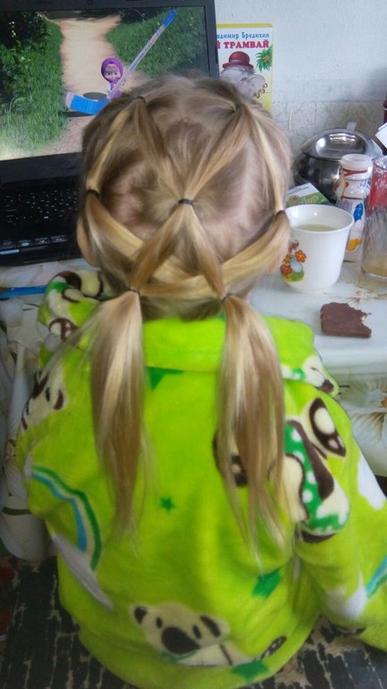 спасибо, буду пробовать, но у вас постарше и , видимо, попокладистее((( у нас еще адаптация (остаточная), иногда настроения нет )))) соглашается только на хвостики, от которых меня уже просто ТОШНИТ(((