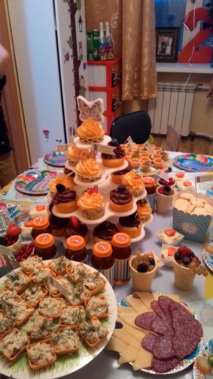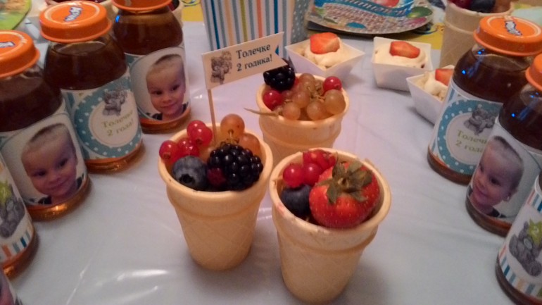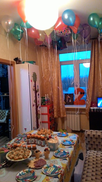 Наприглашали гостей,в основном наши друзья со своими детьми. Все прошло хорошо,но дома отмечать больше не буду. Лучше в кафе. 1 год мы как раз отмечали в Шоколаднице в детской комнате. Очень понравилось! Ко второму дню рождения я начала готовиться месяца за 2: придумывала меню,декор квартиры,заказывала шарики,баллон с гелием.циферку из ниток,именные шоколадки с фото, этикетки на соки и пр. И вот что из этого получилось. Весь стол приготовлен мною лично,за исключением макаронс.