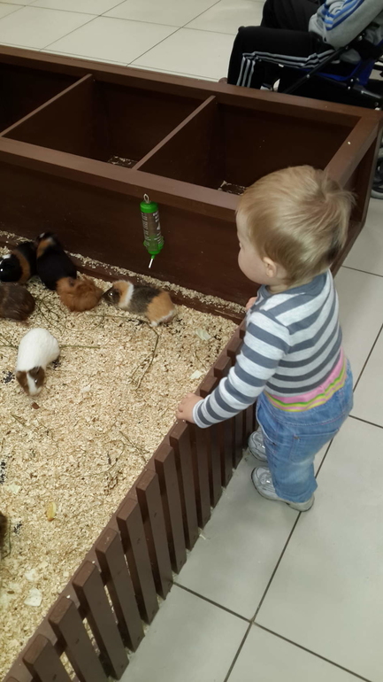 В сентябре мы ходили в "Ручной зоопарк". Мама с папой наверно больше пищали от удовольствия, чем дети. Викуле понравились только морские свинки....и цыплята.