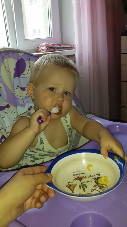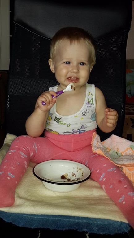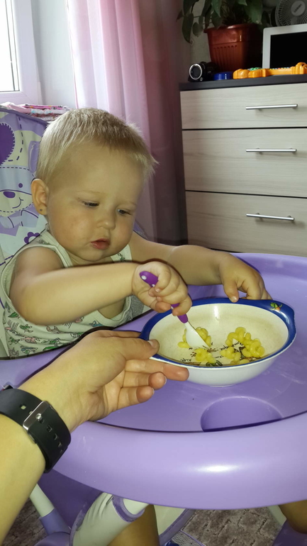 Кушаем всё с общего стола, ну естественно кроме сильно солёного, жирного, острого и т. д. Кашу на молоке совсем не ест. Приходится варить пюре на молоке. Молоко пьёт просто из кружки.